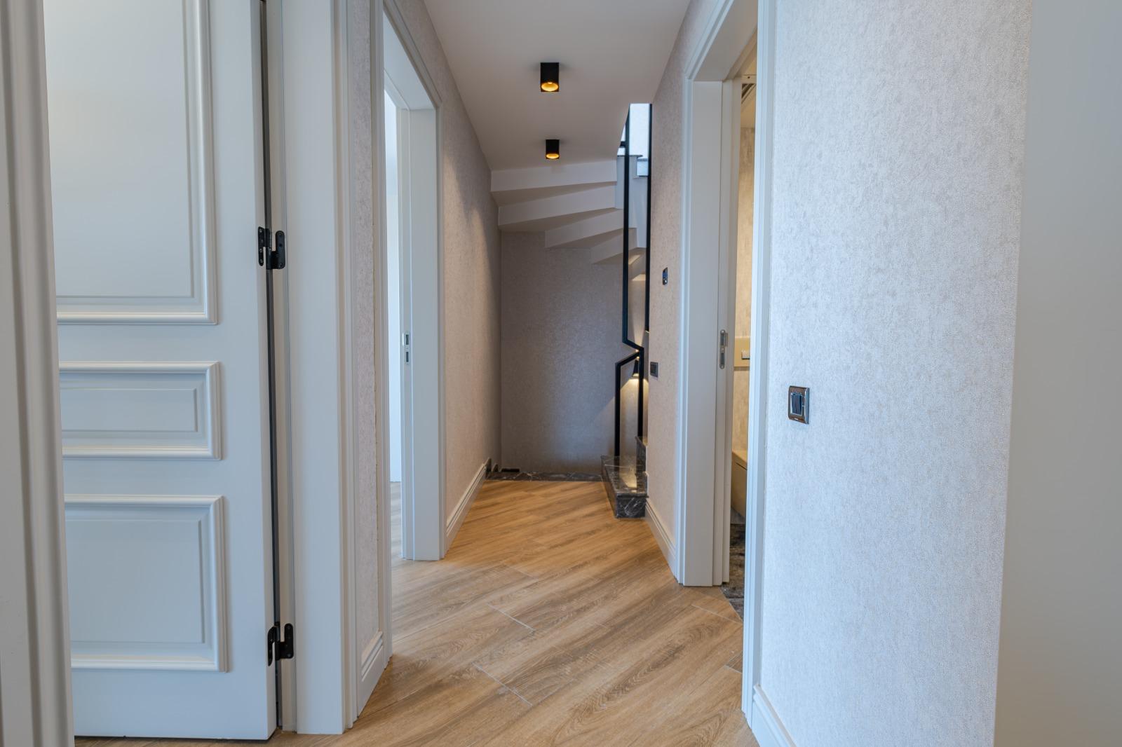 2 adet yaşam alanı, mutfak, ebeveyn odası, giyinme odası, ebeveyn banyosu, 3 adet genç odası, çamaşır odası, 1 adet misafir tuvaleti, 2 adet genel banyo ve genis balkon ve teras alanlarından oluşan villalarımız 260 m²dir.