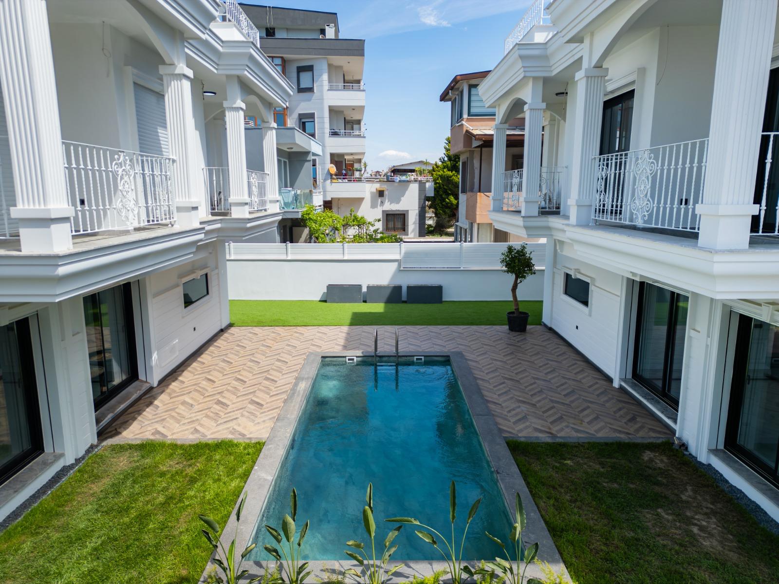 5+2 triplex villalar ile şekillenmiş bu projemiz, tamamı özel bir siteden oluşan, havuzundan geniş bahçe alanlarına ve kapalı otoparkına kadar tasarlanmış bölgesinin en dikkat çeken projeleri arasında yer almaktadır.